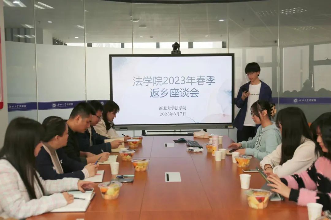 在返乡座谈会中,既有学生讲述假期生活、家乡变化,也有学生提出在就业和升学方面的迷茫与困惑。诸位老师在了解、关心学生之余,对于学生的问题和困惑一一做出解答。党委副书记丁晓雯老师结合自身经历与经验,希望各位同学要多与导师沟通,反馈问题,此外也要不断提升自我,打磨自己,以期面对一系列机遇与挑战。各位辅导员老师针对学生的问题提供了一些建议,也就我院对于学生就业及升学等一系列安排进行了详细介绍,包括经验分享会、朋辈交流会、企业法务班等。