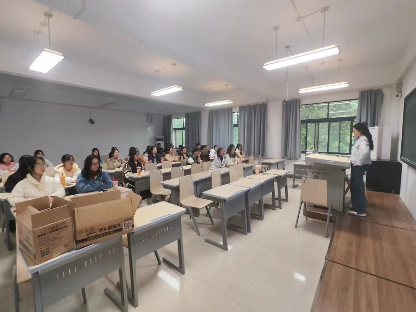 班会中,班主任老师就大学期间学习与生活两方面展开回答和讨论。