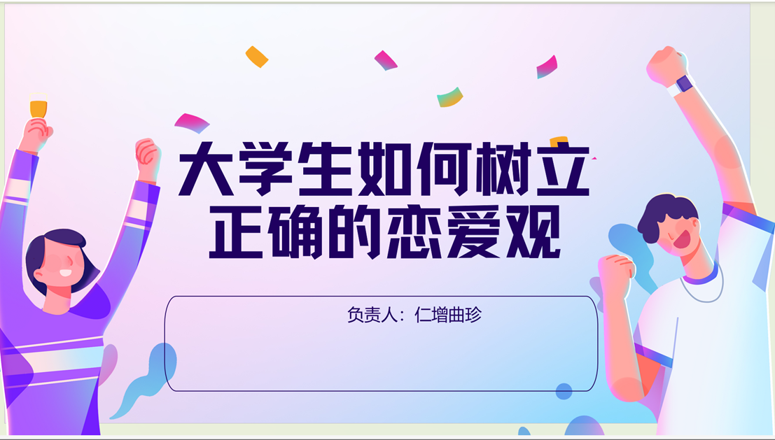 本次活动以“树立正确的恋爱观”为主题,帮助同学们树立正确的恋爱观,理智看待恋爱问题,提高同学们对于恋爱的责任感。本次活动通过三个小情景,让同学们经历恋爱中相识-相互了解-确立关系-深入交往-维持感情五个环节,让同学们感受到恋爱不能用道德进行约束、在恋爱中两人地位是平等的、如何处理失恋后的情绪以及正确区分恋爱与性的关系。用轻松娱乐的形式引导同学们,加强同学们对一段恋爱关系的责任感。