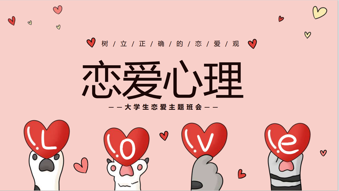 本次心理班会的主题是恋爱心理, 在不断地学习以及日常生活中,可能会出现一些恋爱心理上的问题。通过本次班会,提高了我班学生对待校园恋爱的认知,让更多的学生关注自身的恋爱心理,调整好自己的心理状态,使做自己对未来充满美好的向往。