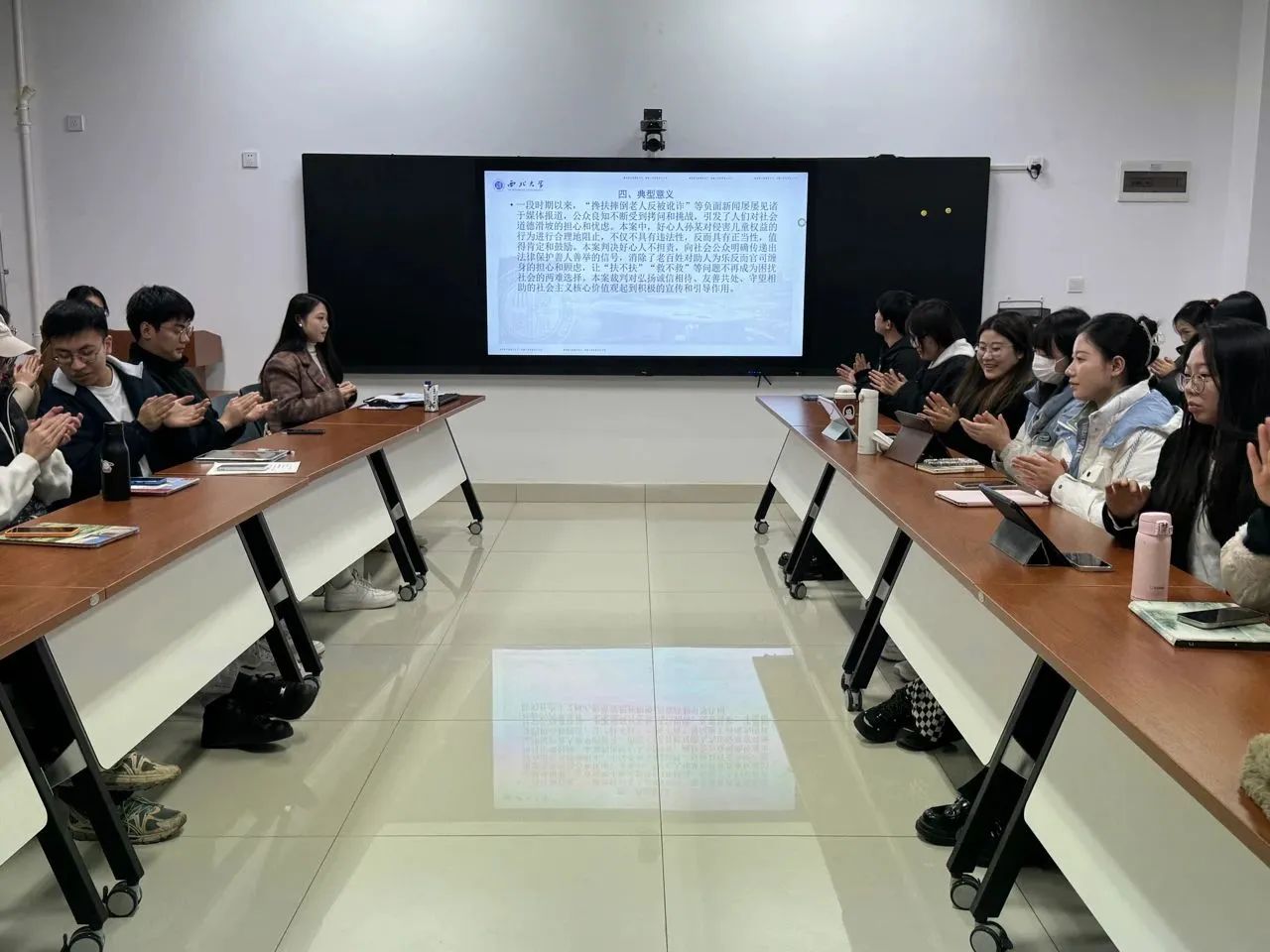 随后以自由讨论的形式,引导参与的同学就争议的焦点展开讨论。同学们各抒己见,从侵权责任、损害赔偿、免责事由等法学角度出发,围绕案件事实和背后引发的深刻社会影响,纷纷表达自己的观点和看法,不断碰撞出思想火花。