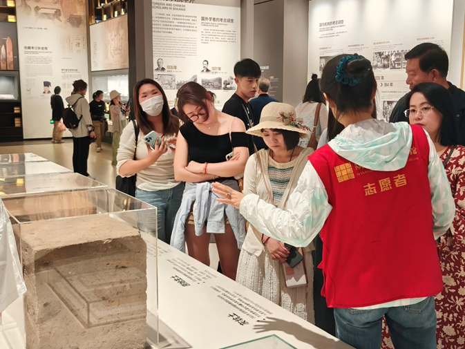 展览现场,文物保护实验室的显微观察设备让党员们得以窥见文物修复的精微技艺,沉浸式影像空间重现了考古现场发掘的震撼场景。通过现场120余件代表性文物和380余份文献档案,支部成员不仅直观感受到中华文明发祥地的深厚底蕴,更深刻认识到考古工作对于揭示中华文化基因的重要价值。