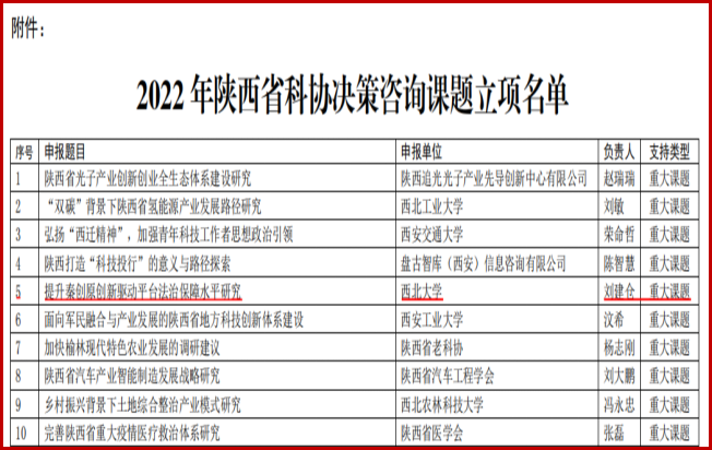 我院刘建仓副教授获批2022年陕西省科协决策咨询重大课题立项
