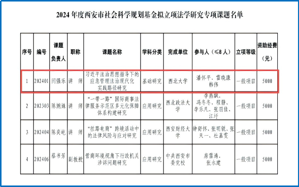 闫强乐博士获批2024年度西安市社会科学规划基金法学研究专项课题