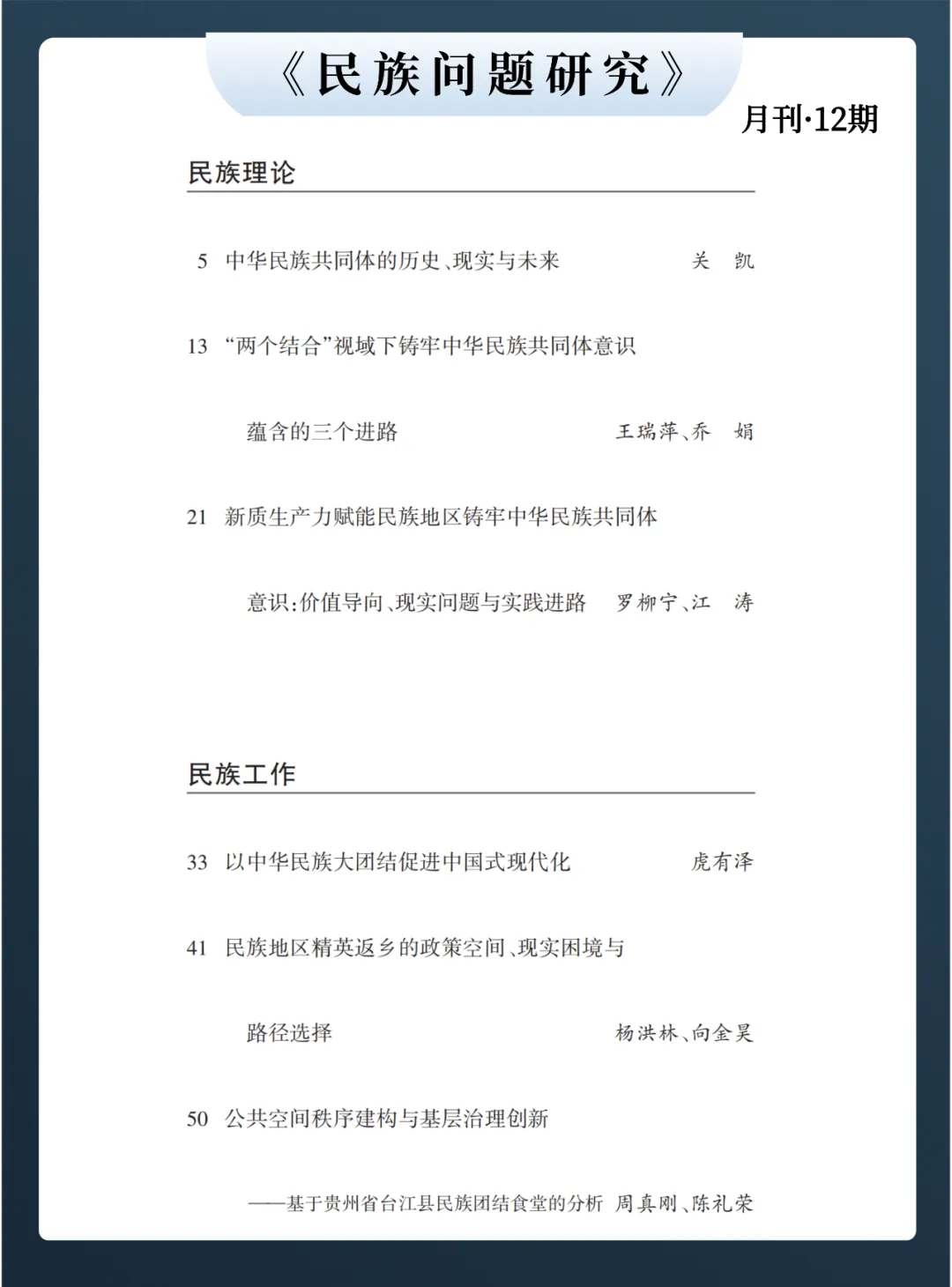 ,我院虎有泽教授撰写的论文《以中华民族大团结促进中国式现代化》被《人大复印报刊资料(民族问题研究)》2024年第12期全文转载,该论文原发表于《西南民族大学学报2024年第6期。