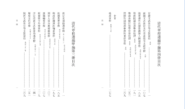 进入清代以后,章程从“事例”的一种转化为国家和地方立法中的独立法律形式,从零星发布到大量编纂、颁行,晚清时又扩展到在签订外交事务、中外通商协议和制定社会组织活动规则时使用,大体经历了三个发展阶段。