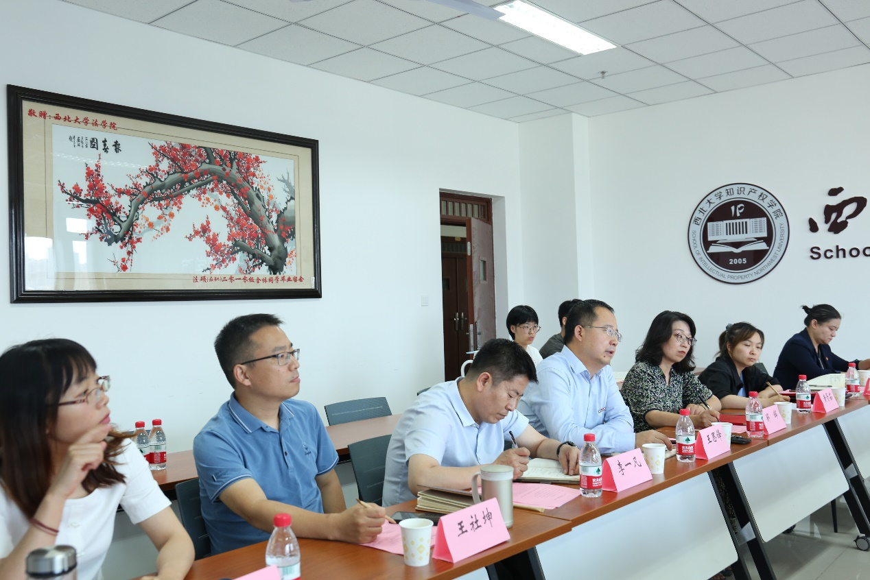 施文平副检察长首先肯定了近年来我院在人才培养、科学研究、交流合作、平台建设等方面取得的成果,他结合西安市人民检察院近期工作重点,深入分析知识产权检察保护和检察公益诉讼的工作现状和措施成效,提出希望进一步与我院加强上述两方面的合作,从而探索检校合作新机制、新模式,共同致力于法治西安建设。袁博主任简要介绍了西安市人民检察院知识产权检察保护工作的开展情况和近期工作规划,他指出西安市人民检察院目前已成立知识产权检察办公室,全面加强刑行衔接,不断加大知识产权犯罪打击力度,今后还将加快推进秦创原知识产权检察保护中心建设,以服务地方经济高质量发展大局。