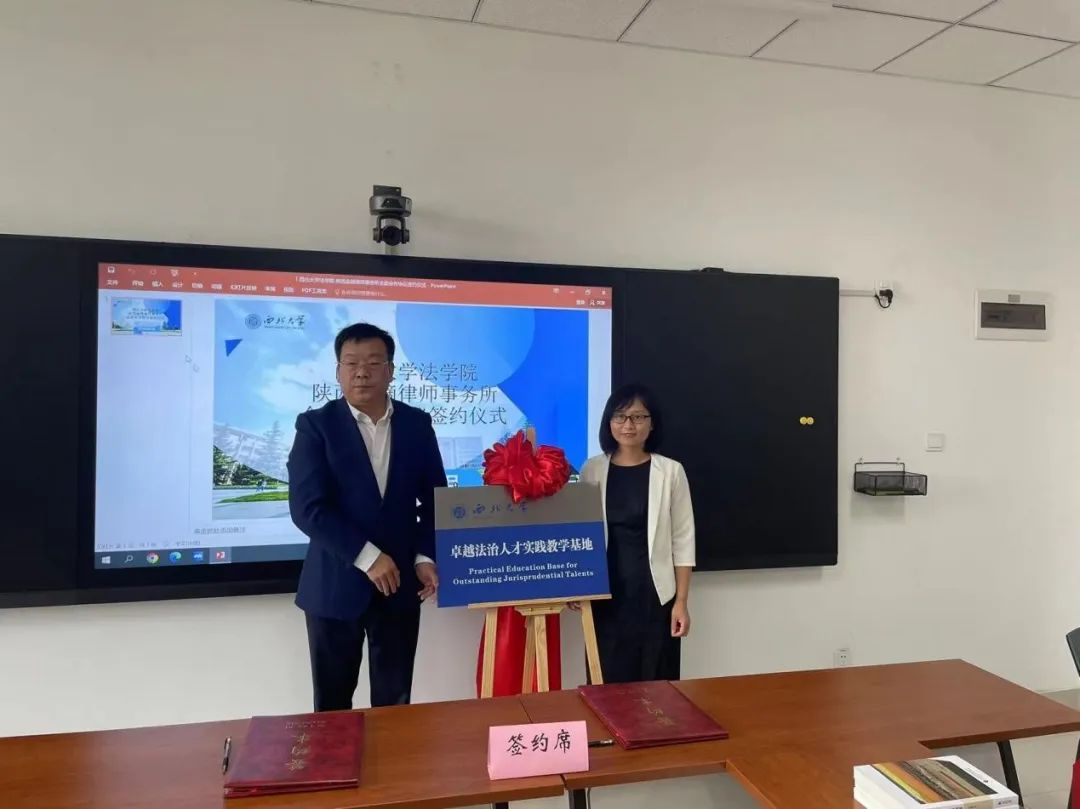 随后,学院院长王思锋和金镝律师事务所主任陈增社代表双方签订全面合作协议和共建法律教学实践基地协议;金镝(榆林)律师事务所主任任亚林和学院副院长崔玲玲共同为卓越法治人才教学实践基地揭牌;学院副院长邱洪华代表学院向金镝律师事务所赠书。
