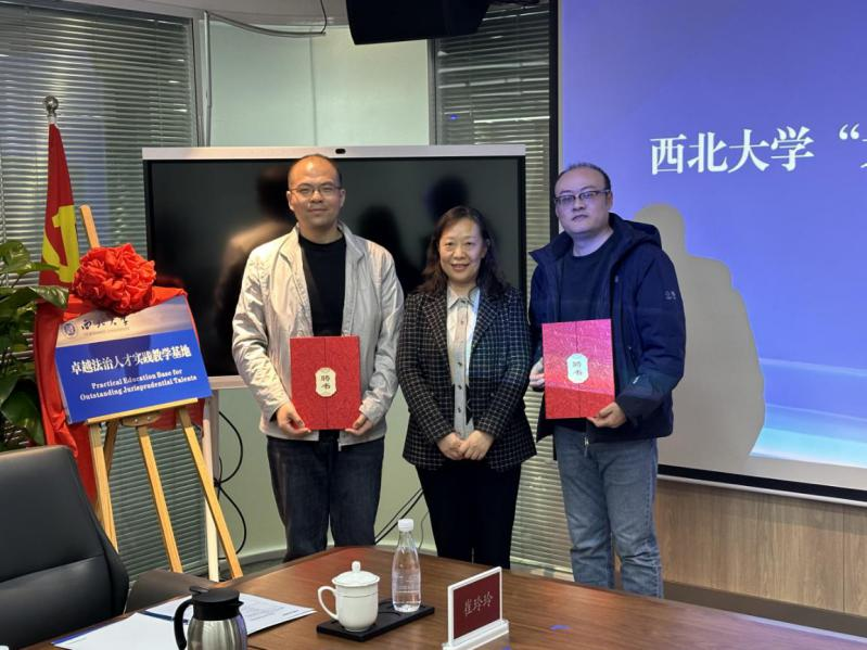 会上,曹蓉和曹慧涛共同为“永利集团卓越法治人才实践教学基地”揭牌,并为曹鹏、符雪颁发“永利集团就业创业指导师”聘书。
