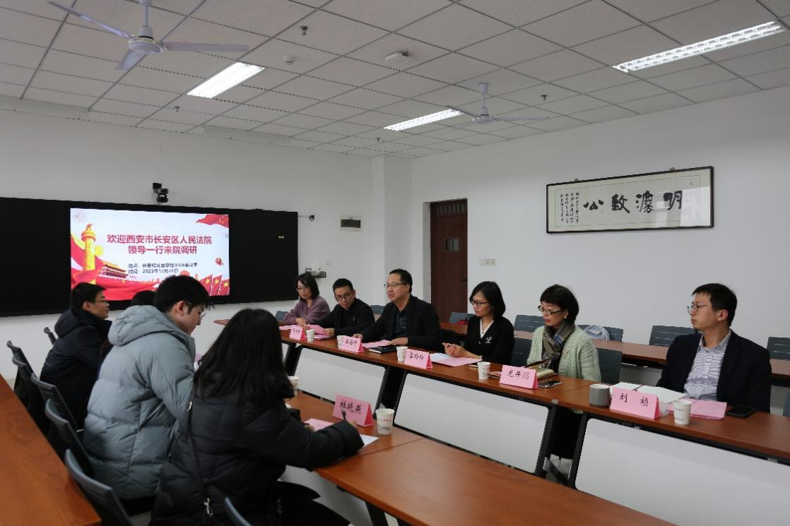 2023年12月28日下午,我院与西安市长安区人民法院工作座谈会在西学楼0906会议室成功举办。西安市长安区人民法院党组成员、副院长史丽妮,综合审判庭副庭长张亮,综合审判庭法官王维君,综合审判庭法官助理王曼丽、杜晓艳,我院党委副书记、院长王思锋,副院长邱洪华、崔玲玲,民商法学教研部教师郑辉副教授、龙井瑢副教授、刘桢博士出席本次座谈会。本次座谈会由崔玲玲副院长主持。
