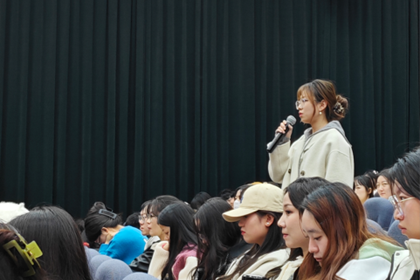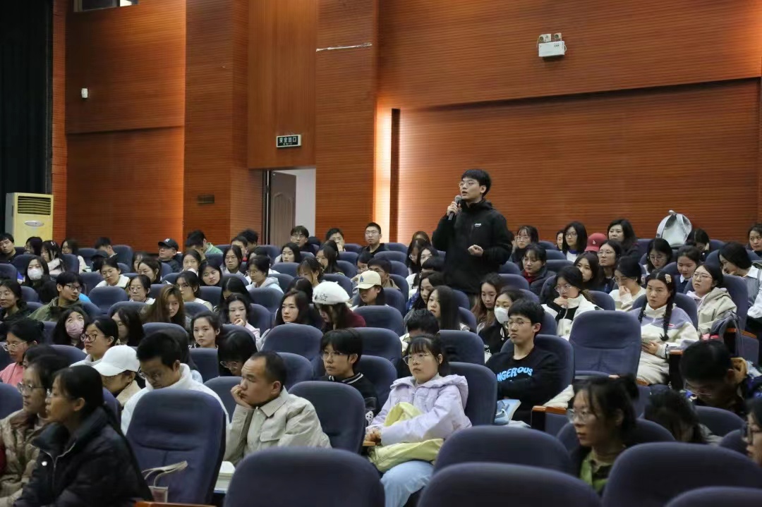 卢建莉法官对法院工作进行了介绍,全面分析了新形势下法院工作的现状,让现场同学们对法官职业有了更加直观的理解。她还指出同学们择业就业要从自身能够做什么的角度出发,在此过程中要有一个清晰的头脑和明确的方向,这样能使自己少走弯路,更快的适应工作岗位。