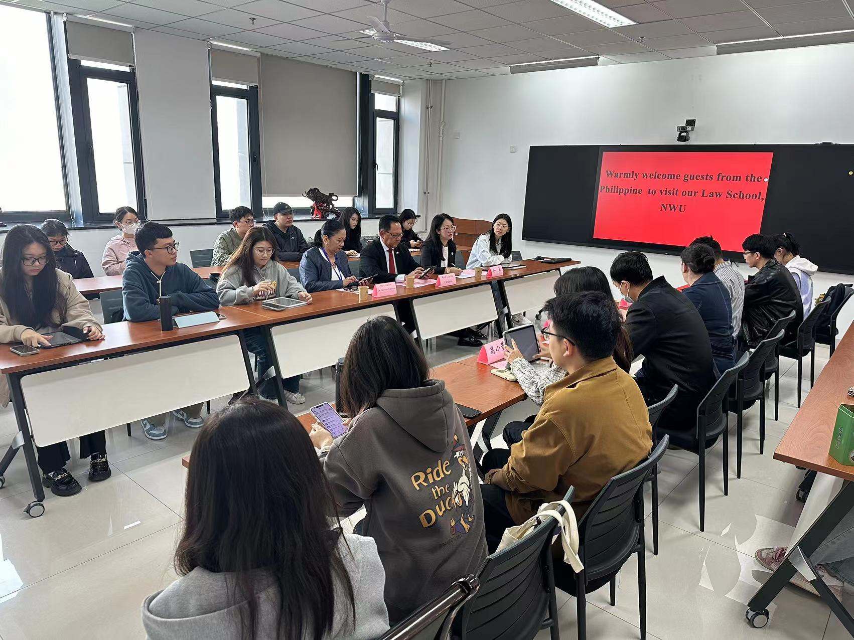 2023年10月25日,为增进中菲友谊,促进民间交流文化互动,加深对彼此之间的认识和了解,菲律宾了解中国友好协会到访77779193永利官网集团,并在西学楼0906展开交流座谈。菲律宾了解中国友好协会主席Raul Loyola Lambino先生和会员Mary Marilyn De Guzman Lambino女士,菲律宾布拉卡国立大学孔子学院中方院长和晶,我院党委副书记丁晓雯、副院长邱洪华和许博、外事秘书高小芳博士和30余名研究生参加了本次交流座谈。