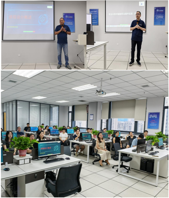 开班仪式进入到专题讲座环节,湖南省码农链智能科技有限公司联合创始人蓝红兵以“司法AI训练营课程设计概述”为题,生动介绍了本次训练营的课程目标、设计理念和课程安排。联合创始人洪新敏以《司法AI技术在案件分析中的应用》,以个案呈现方式讲述AI技术在司法场景中展现的独特价值,深入探讨了AI技术在司法中的应用可能性与必要性。